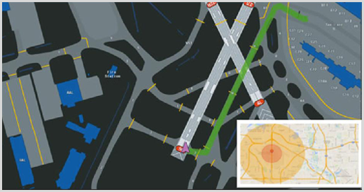 With situational awareness including aircraft position, AMS implements Geo Fencing for the surface movement in the land and air sides of the airport. Mobile resources with AMS Client Applications are dynamically routed and controlled in to the safe zone. Dynamic Safe Limit Prediction, Traffic Management and Violation Alert features avoid collisions and incursions.